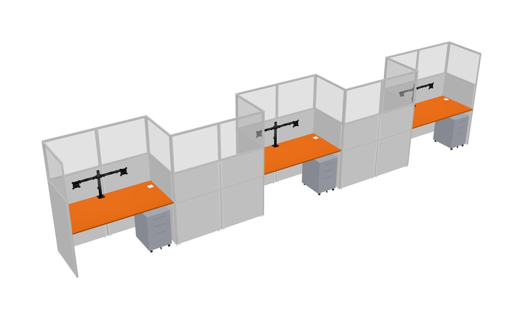 Orange Rectangular Cubicle Workstations For 5 - Zigzag Formation + Grey Metal Mobile Drawers