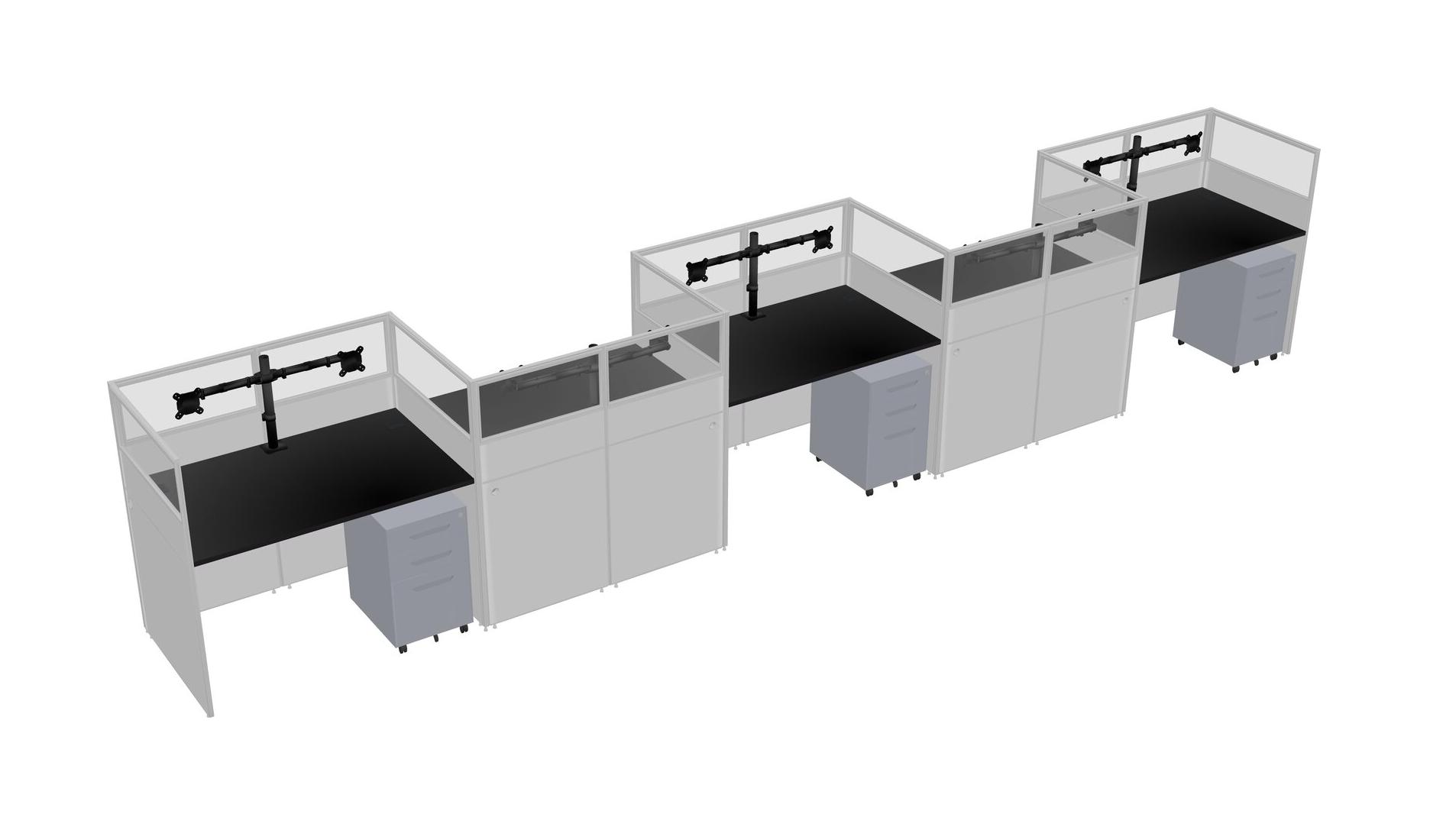 Black Rectangular Cubicle Workstations For 5 - Zigzag Formation + Grey Metal Mobile Drawers