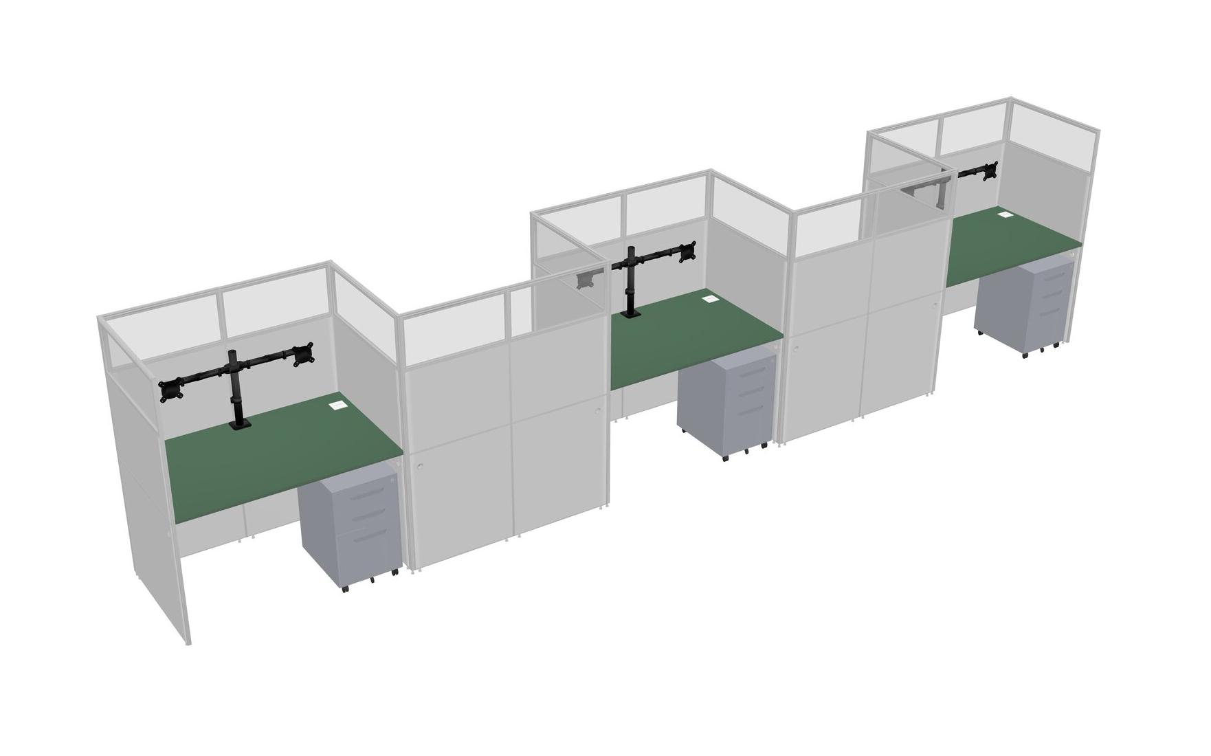 Green Rectangular Cubicle Workstations For 5 - Zigzag Formation + Grey Metal Mobile Drawers