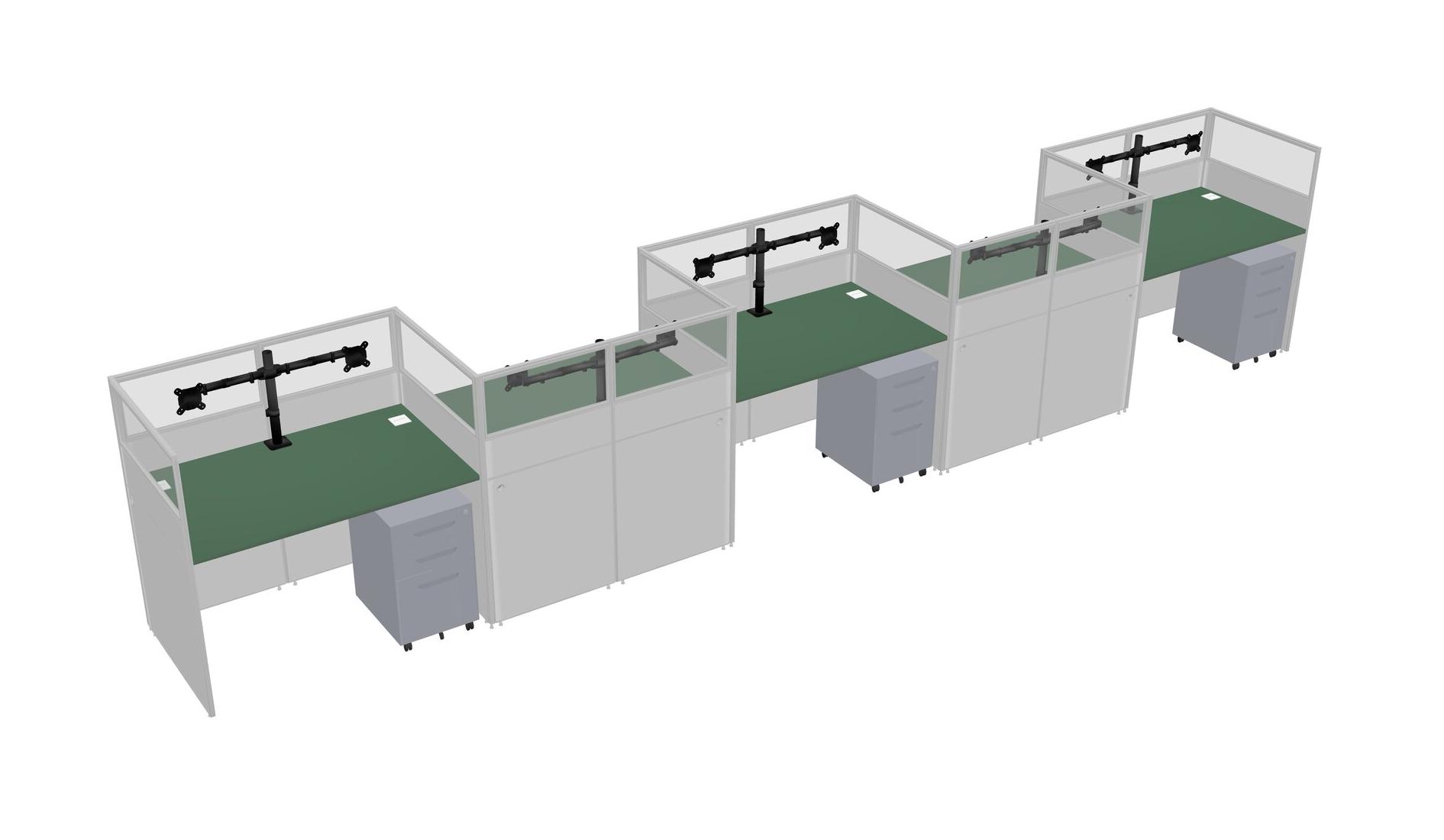 Green Rectangular Cubicle Workstations For 5 - Zigzag Formation + Grey Metal Mobile Drawers