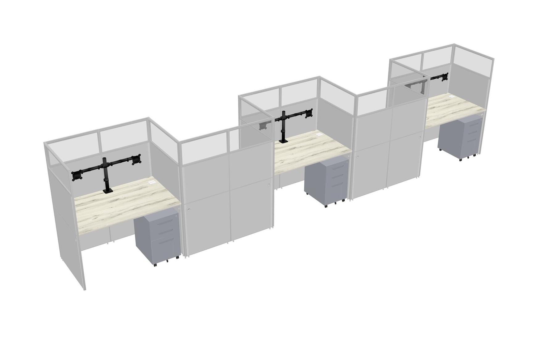 Heinne Holz Rectangular Cubicle Workstations For 5 - Zigzag Formation + Grey Metal Mobile Drawers