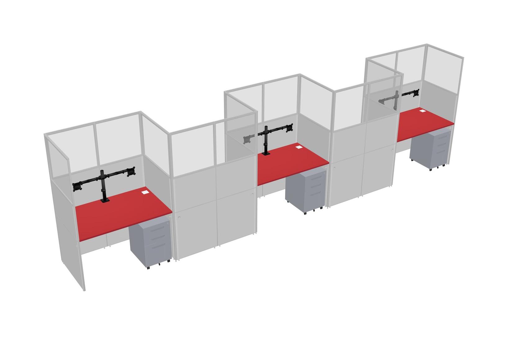 Prism Red Rectangular Cubicle Workstations For 5 - Zigzag Formation + Grey Metal Mobile Drawers