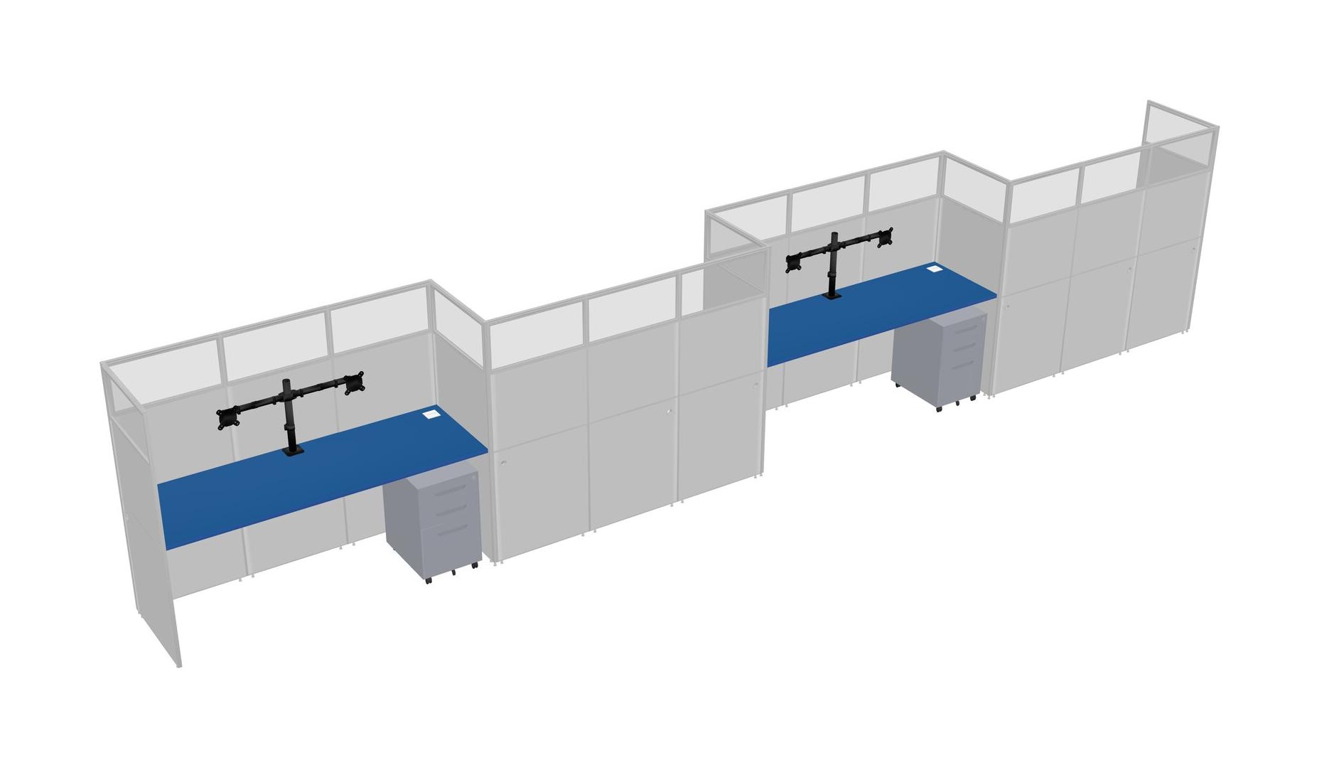 Prism Blue Rectangular Cubicle Workstations For 4 - Zigzag Formation + Grey Metal Mobile Drawers