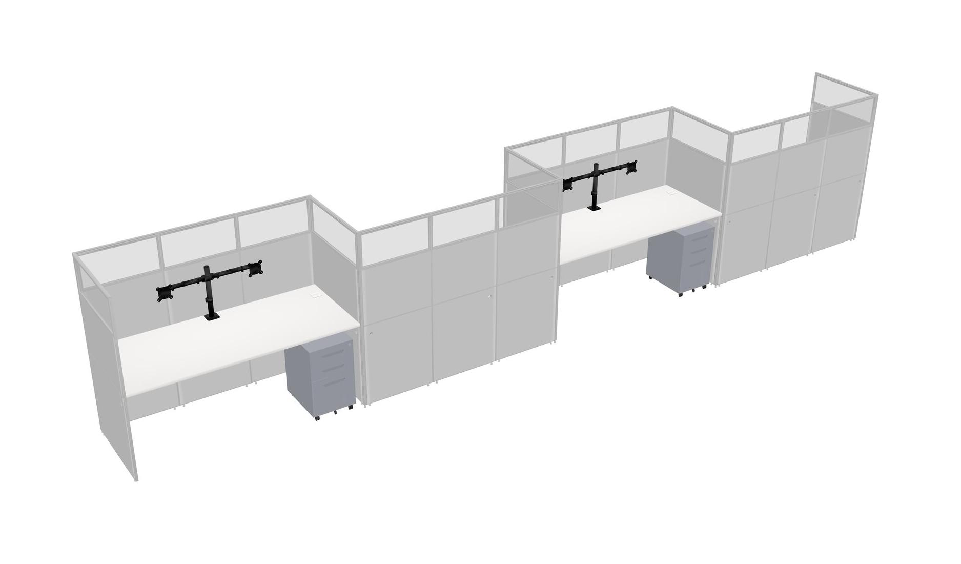 White Rectangular Cubicle Workstations For 4 - Zigzag Formation + Grey Metal Mobile Drawers