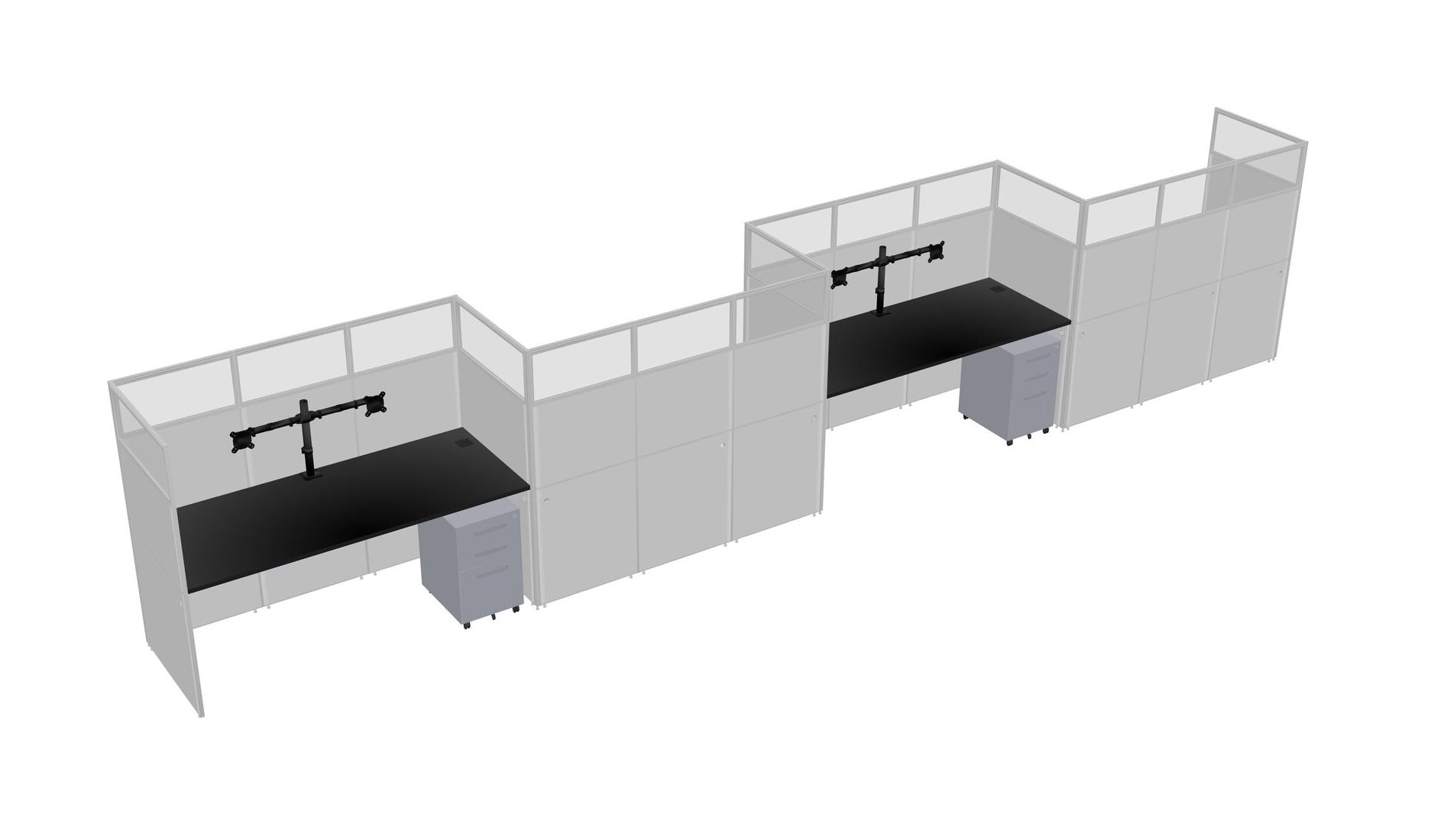 Black Rectangular Cubicle Workstations For 4 - Zigzag Formation + Grey Metal Mobile Drawers
