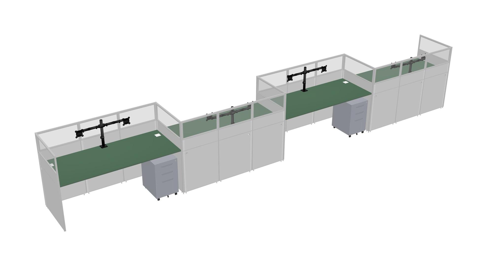Green Rectangular Cubicle Workstations For 4 - Zigzag Formation + Grey Metal Mobile Drawers