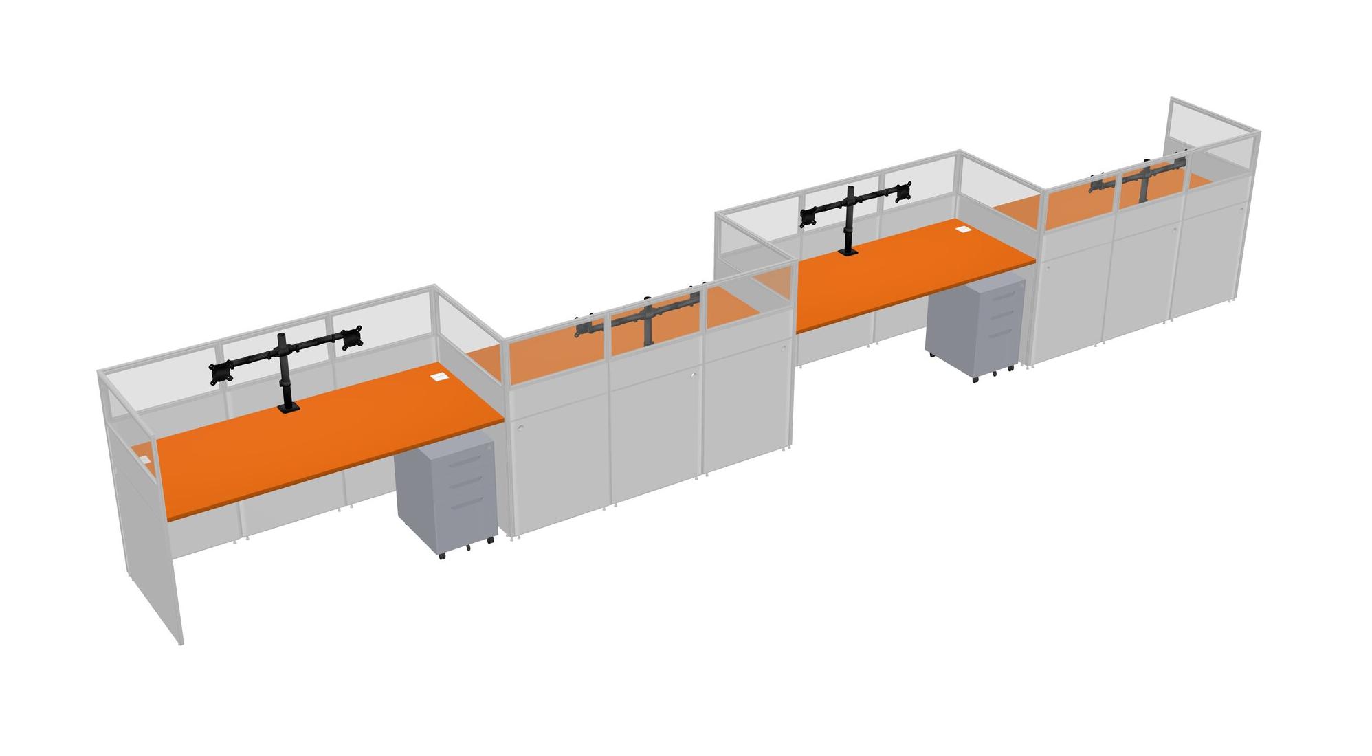 Orange Rectangular Cubicle Workstations For 4 - Zigzag Formation + Grey Metal Mobile Drawers