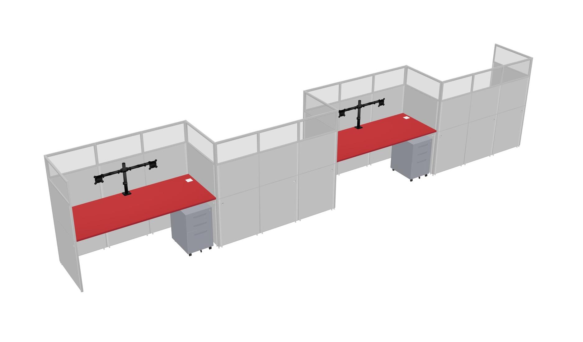 Prism Red Rectangular Cubicle Workstations For 4 - Zigzag Formation + Grey Metal Mobile Drawers