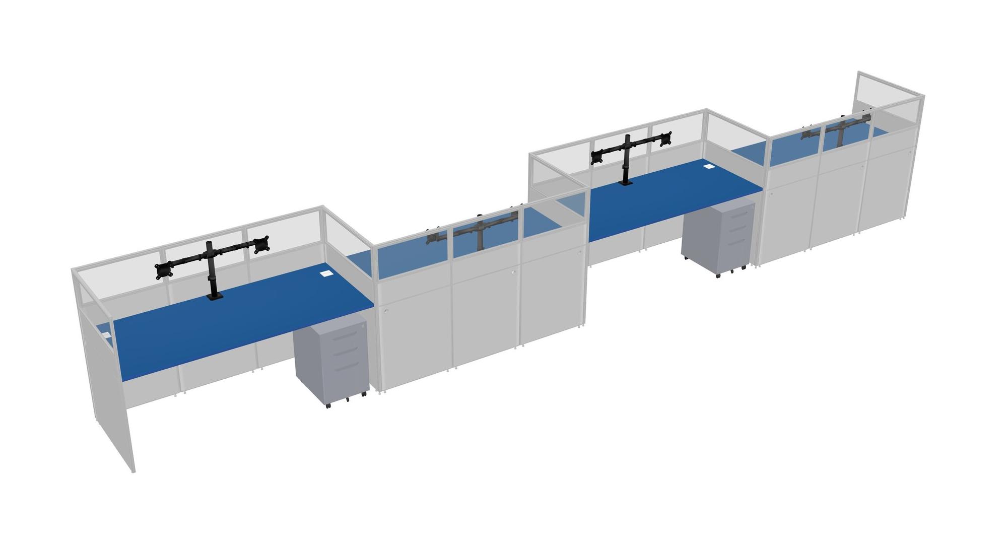 Prism Blue Rectangular Cubicle Workstations For 4 - Zigzag Formation + Grey Metal Mobile Drawers