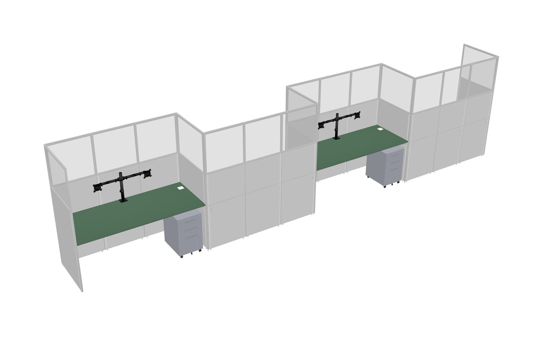Green Rectangular Cubicle Workstations For 4 - Zigzag Formation + Grey Metal Mobile Drawers