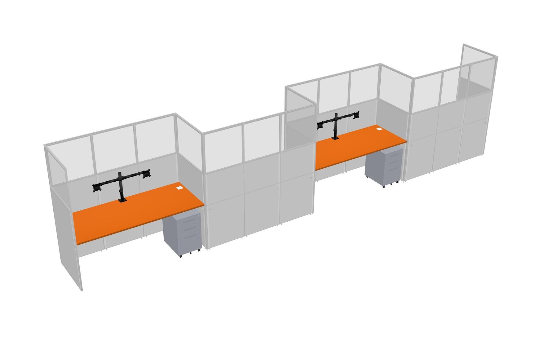 Orange Rectangular Cubicle Workstations For 4 - Zigzag Formation + Grey Metal Mobile Drawers