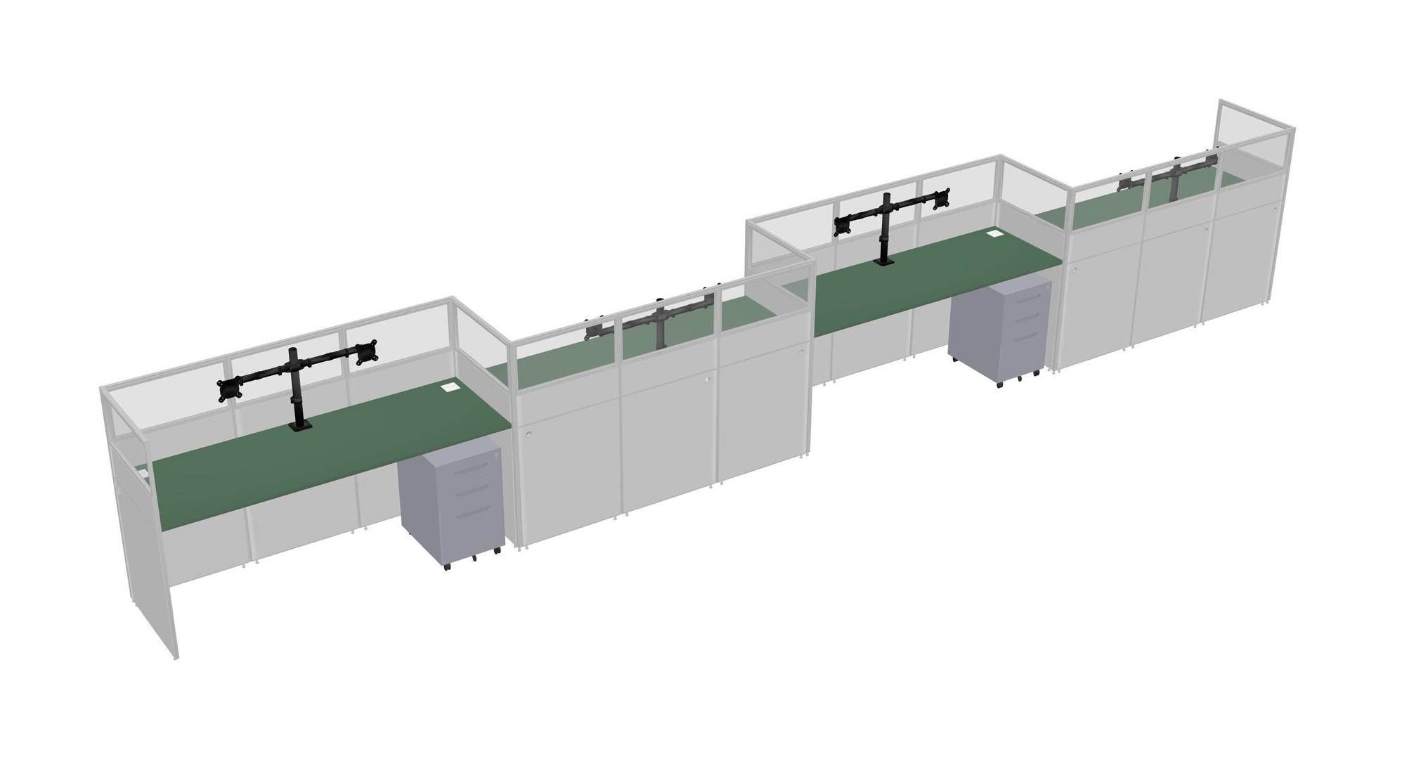 Green Rectangular Cubicle Workstations For 4 - Zigzag Formation + Grey Metal Mobile Drawers