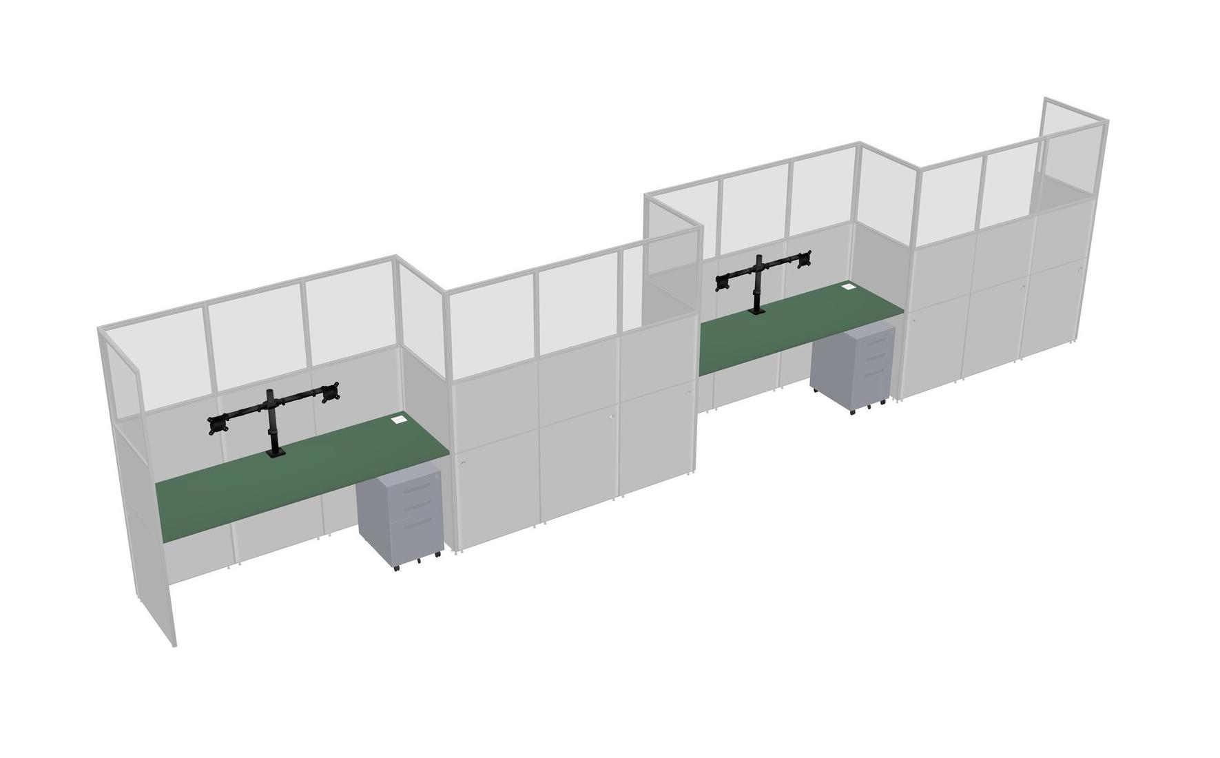 Green Rectangular Cubicle Workstations For 4 - Zigzag Formation + Grey Metal Mobile Drawers