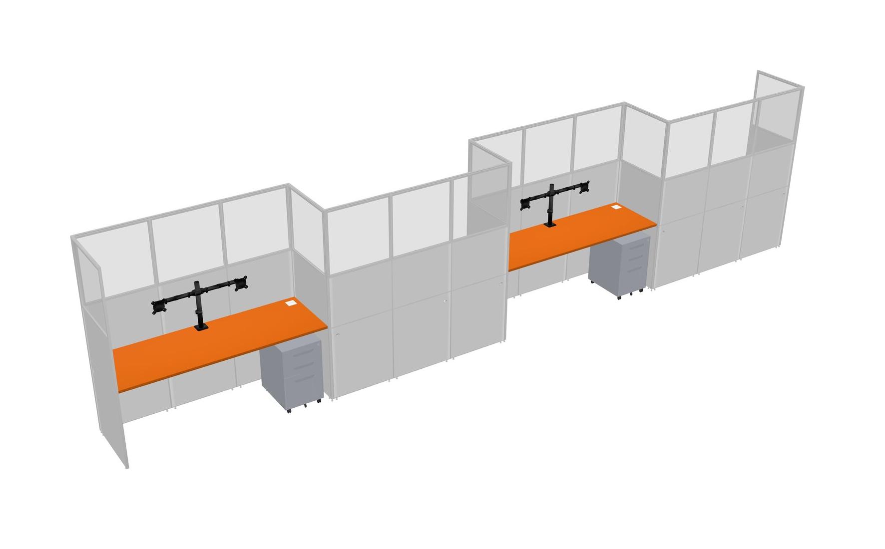 Orange Rectangular Cubicle Workstations For 4 - Zigzag Formation + Grey Metal Mobile Drawers