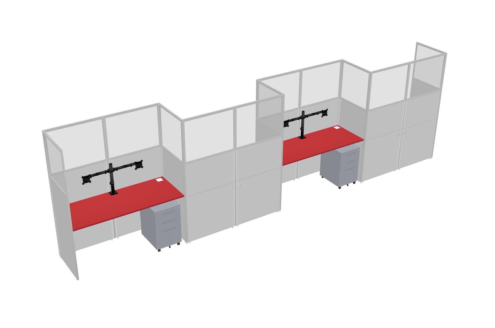 Prism Red Rectangular Cubicle Workstations For 4 - Zigzag Formation + Grey Metal Mobile Drawers
