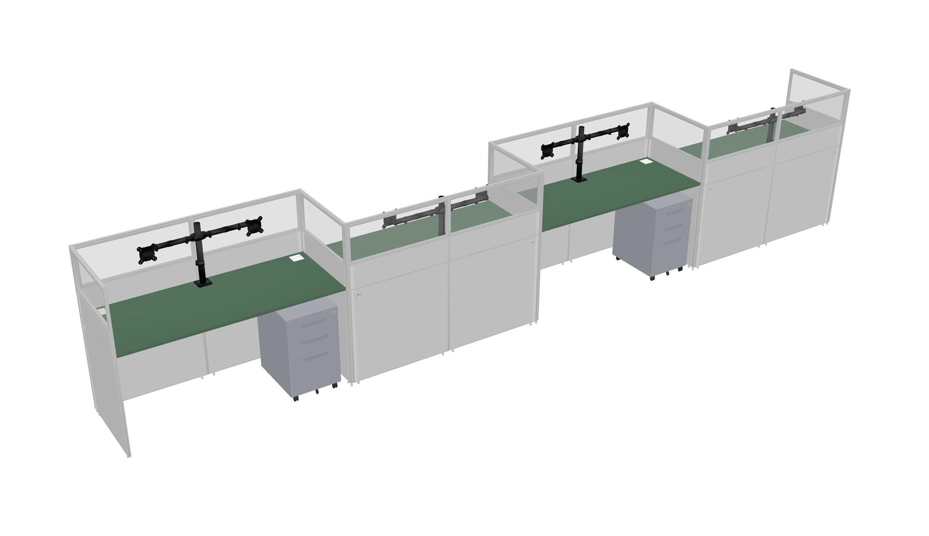 Green Rectangular Cubicle Workstations For 4 - Zigzag Formation + Grey Metal Mobile Drawers