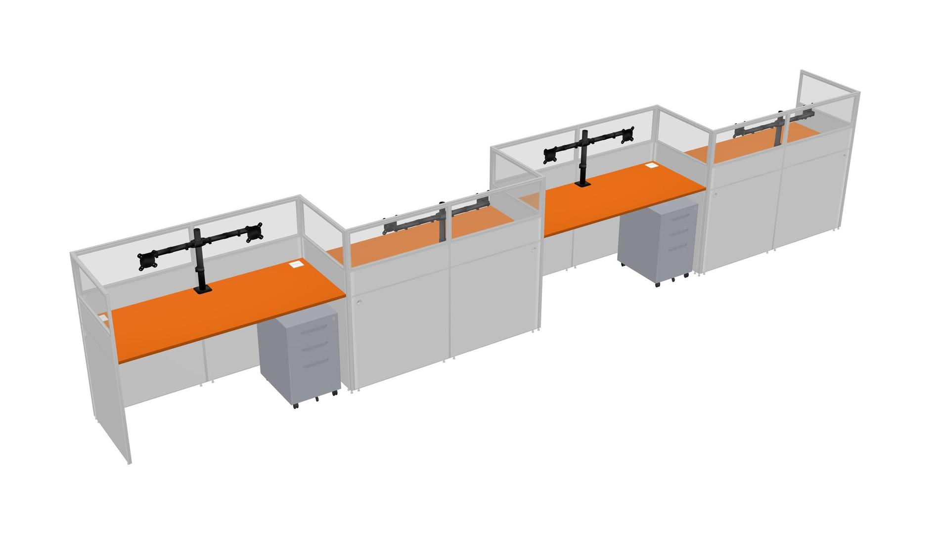 Orange Rectangular Cubicle Workstations For 4 - Zigzag Formation + Grey Metal Mobile Drawers