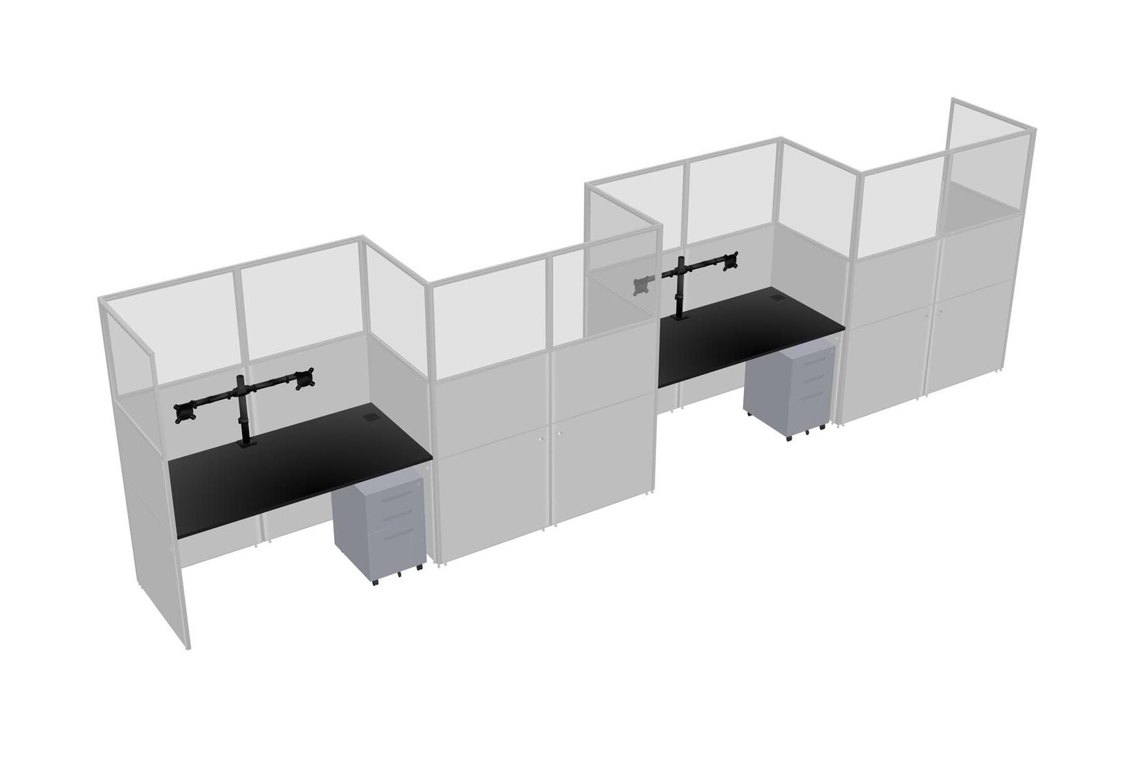 Black Rectangular Cubicle Workstations For 4 - Zigzag Formation + Grey Metal Mobile Drawers