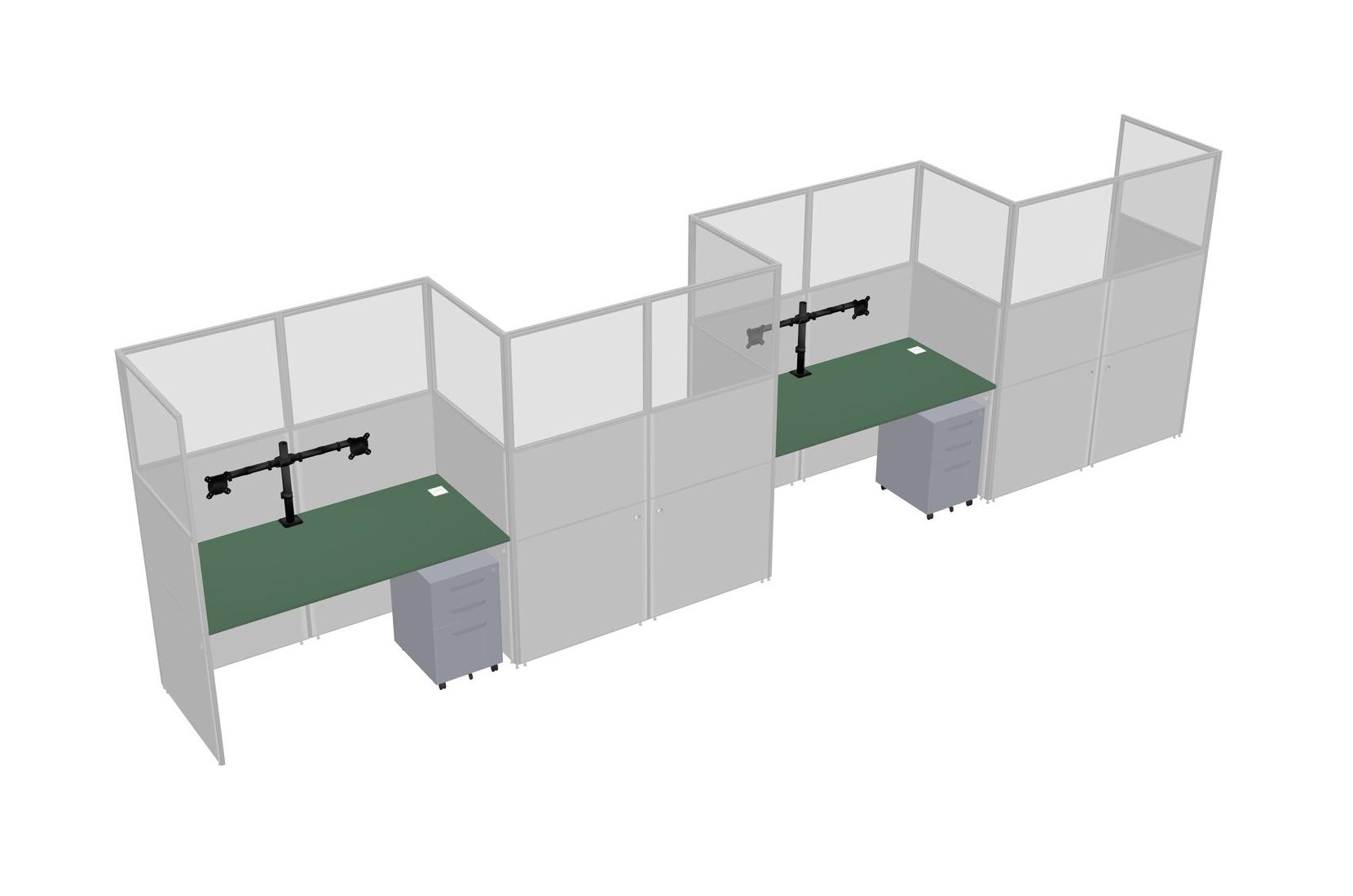 Green Rectangular Cubicle Workstations For 4 - Zigzag Formation + Grey Metal Mobile Drawers