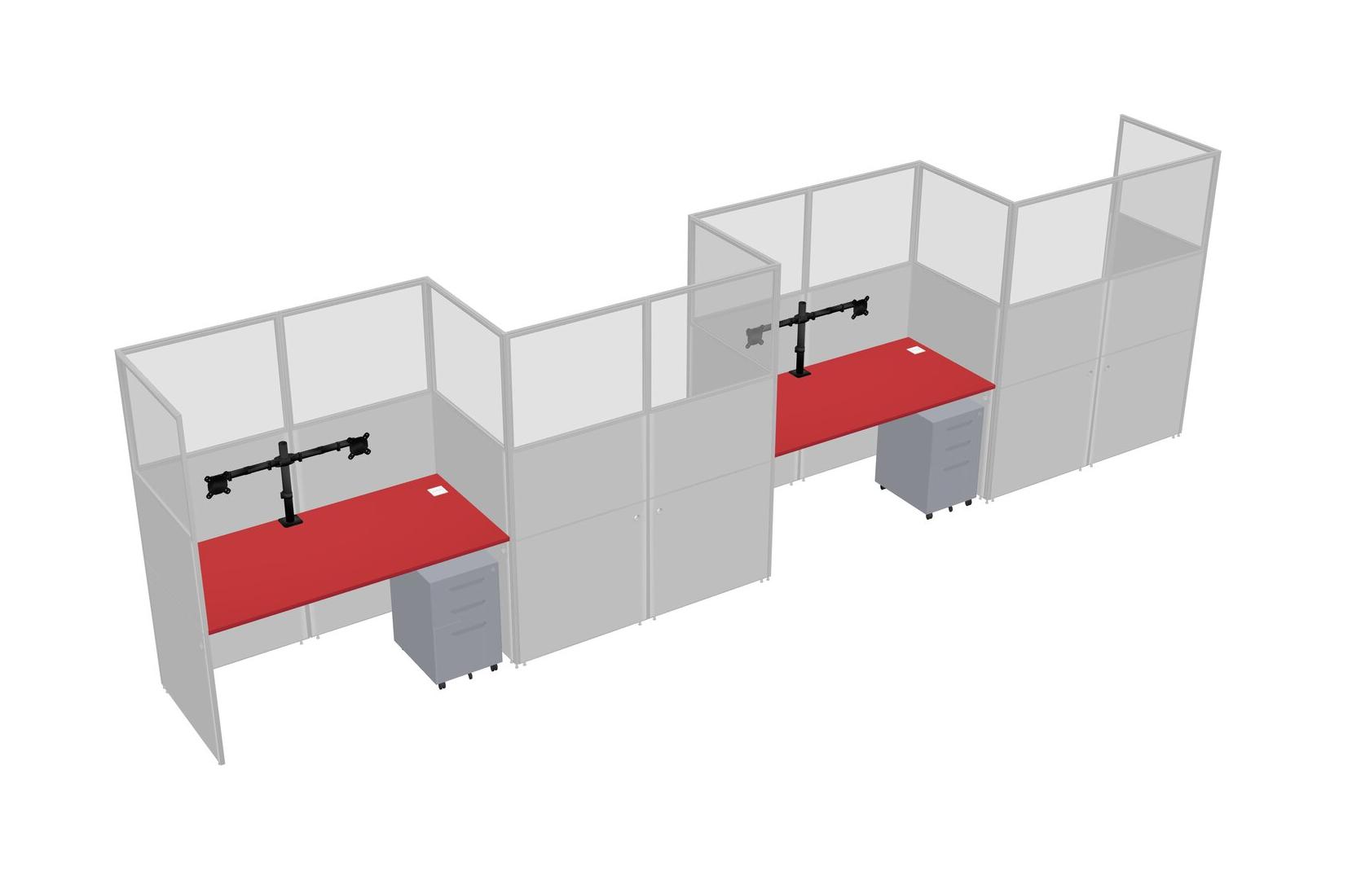 Prism Red Rectangular Cubicle Workstations For 4 - Zigzag Formation + Grey Metal Mobile Drawers