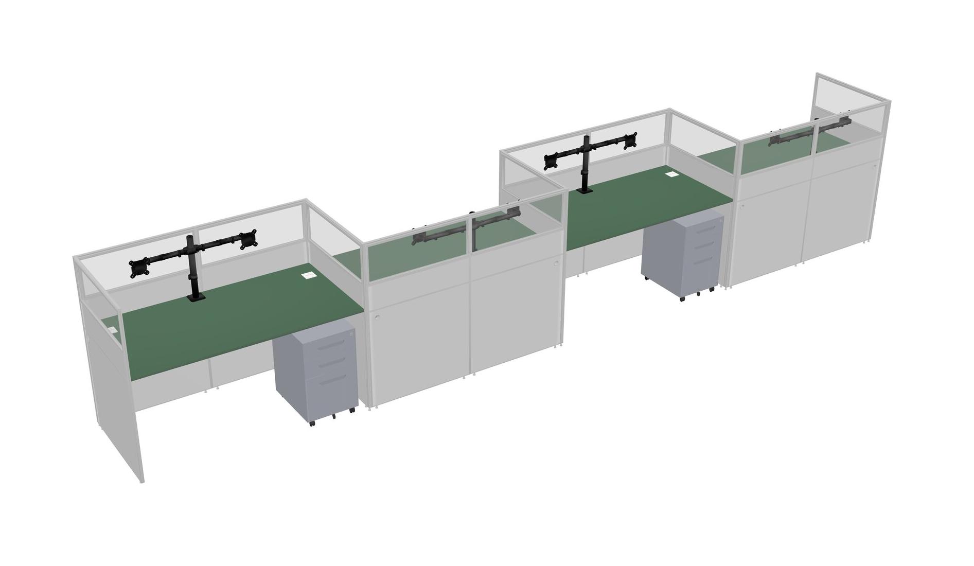 Green Rectangular Cubicle Workstations For 4 - Zigzag Formation + Grey Metal Mobile Drawers