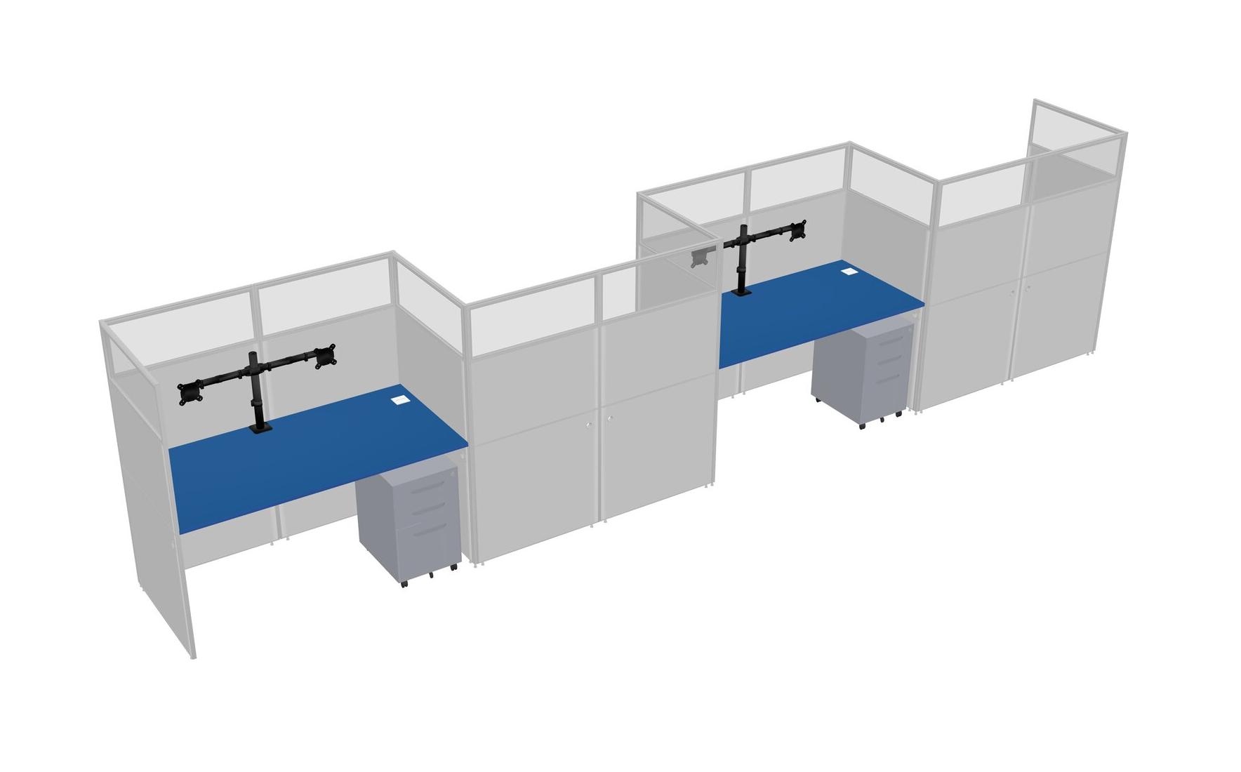Prism Blue Rectangular Cubicle Workstations For 4 - Zigzag Formation + Grey Metal Mobile Drawers