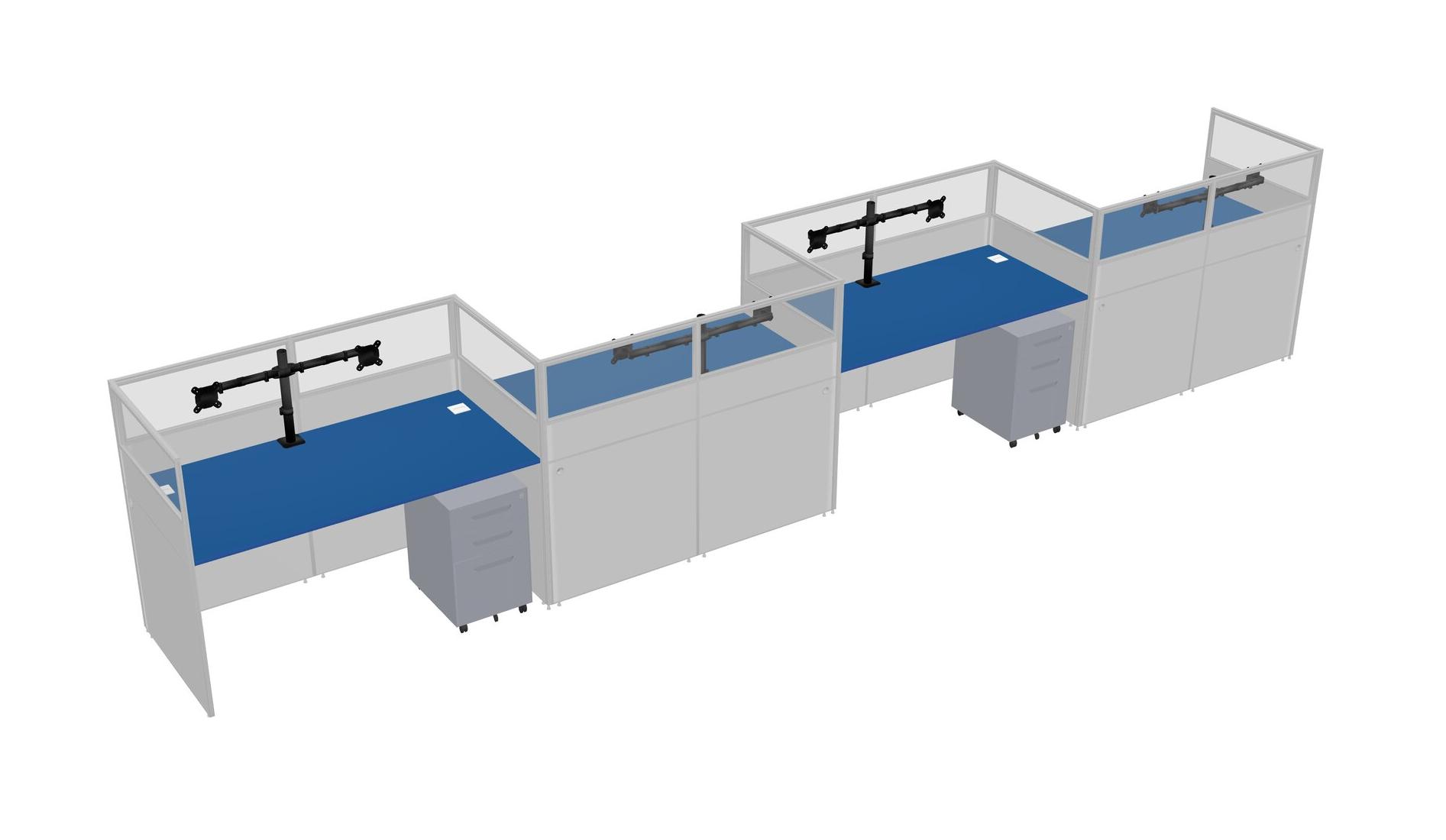 Prism Blue Rectangular Cubicle Workstations For 4 - Zigzag Formation + Grey Metal Mobile Drawers