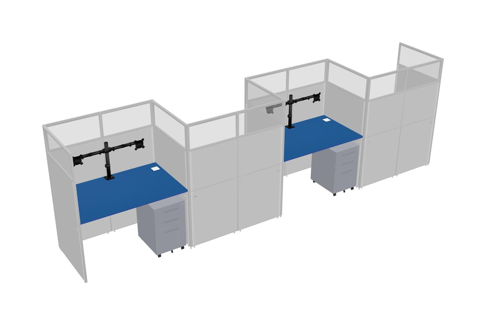 Prism Blue Rectangular Cubicle Workstations For 4 - Zigzag Formation + Grey Metal Mobile Drawers