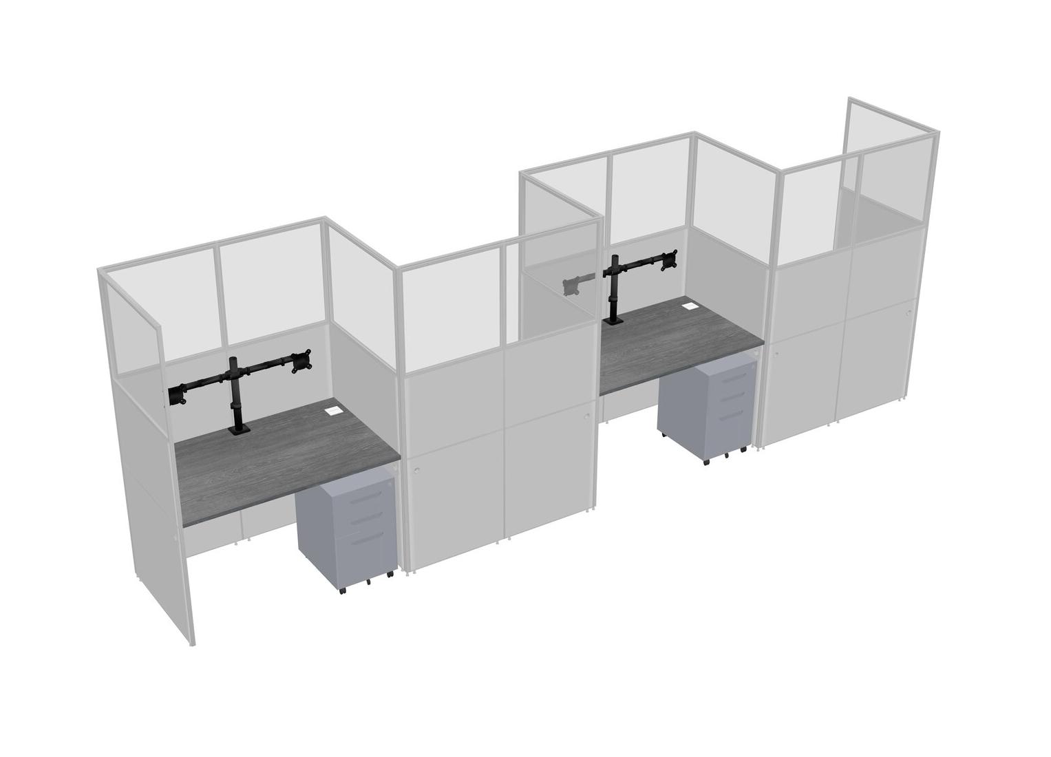 Grey Rectangular Cubicle Workstations For 4 - Zigzag Formation + Grey Metal Mobile Drawers