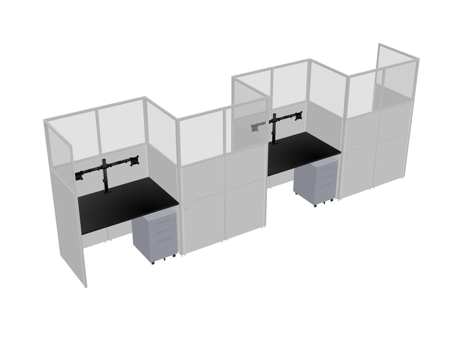 Black Rectangular Cubicle Workstations For 4 - Zigzag Formation + Grey Metal Mobile Drawers