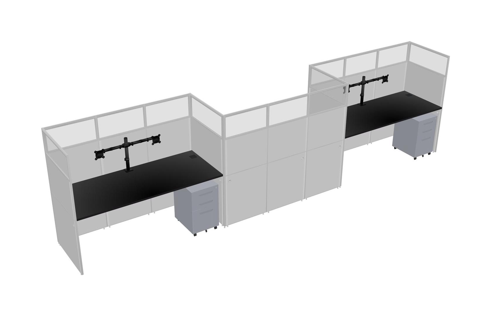 Black Rectangular Cubicle Workstations For 3 - Zigzag Formation + Grey Metal Mobile Drawers