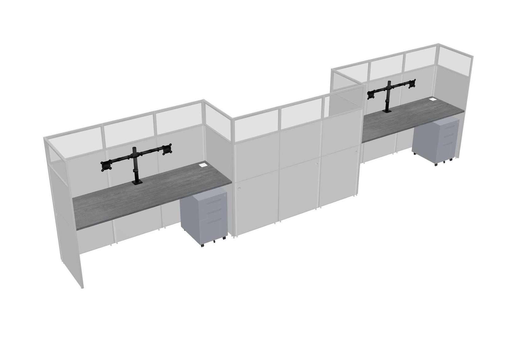 Grey Rectangular Cubicle Workstations For 3 - Zigzag Formation + Grey Metal Mobile Drawers