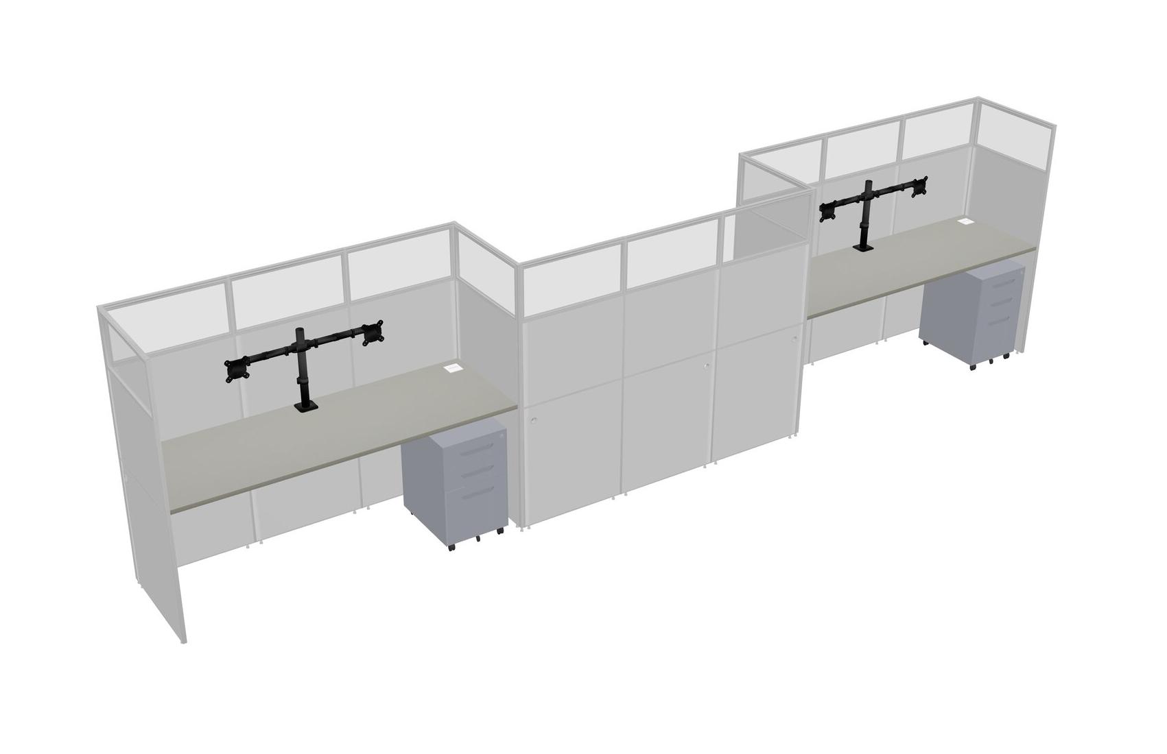 Grey Shadows Rectangular Cubicle Workstations For 3 - Zigzag Formation + Grey Metal Mobile Drawers