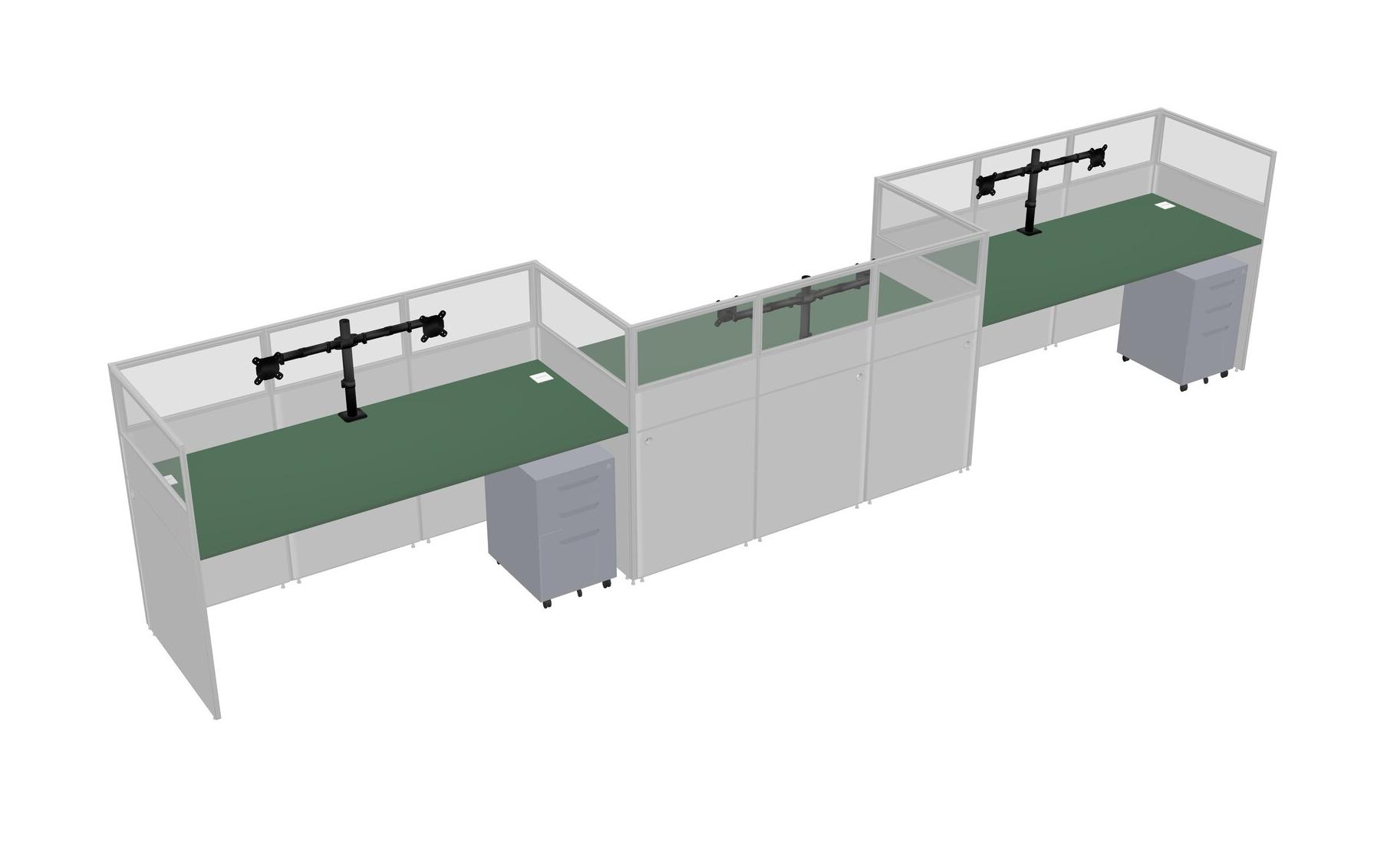 Green Rectangular Cubicle Workstations For 3 - Zigzag Formation + Grey Metal Mobile Drawers