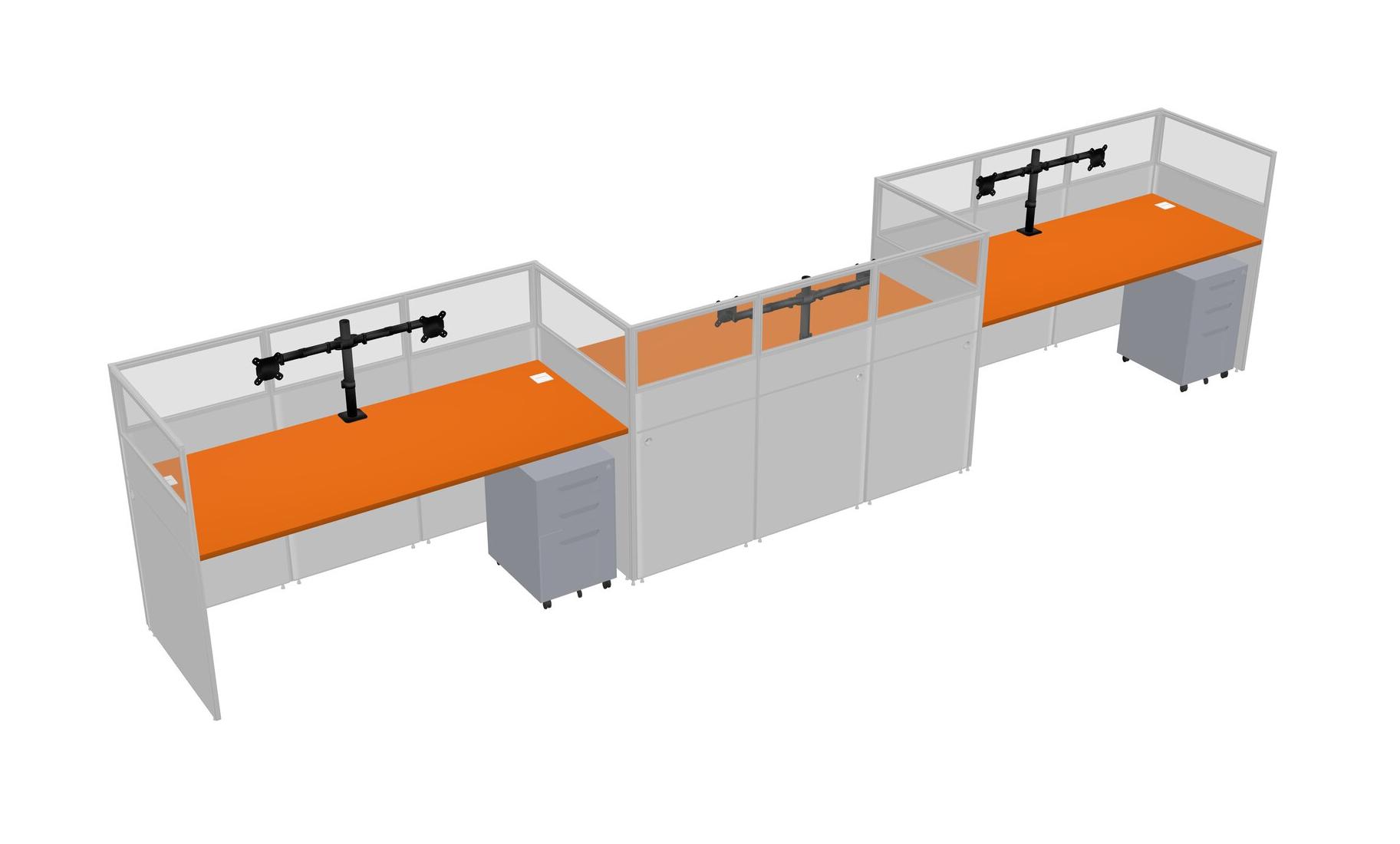 Orange Rectangular Cubicle Workstations For 3 - Zigzag Formation + Grey Metal Mobile Drawers