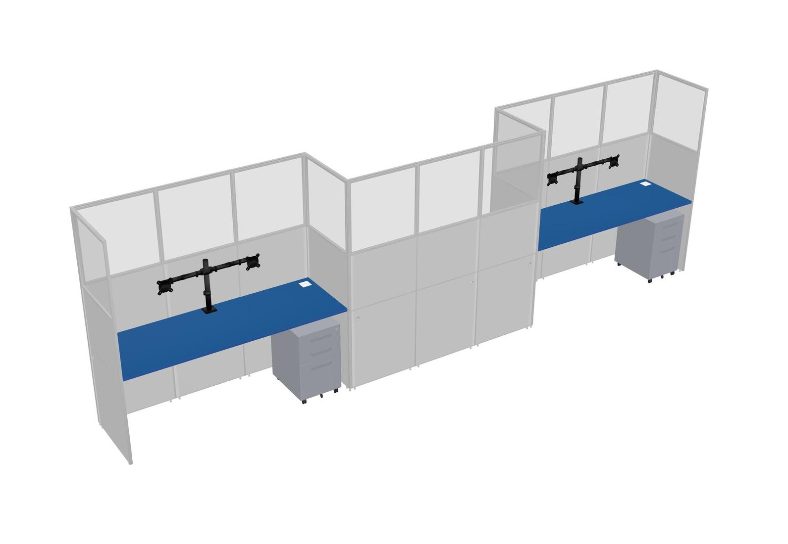 Prism Blue Rectangular Cubicle Workstations For 3 - Zigzag Formation + Grey Metal Mobile Drawers