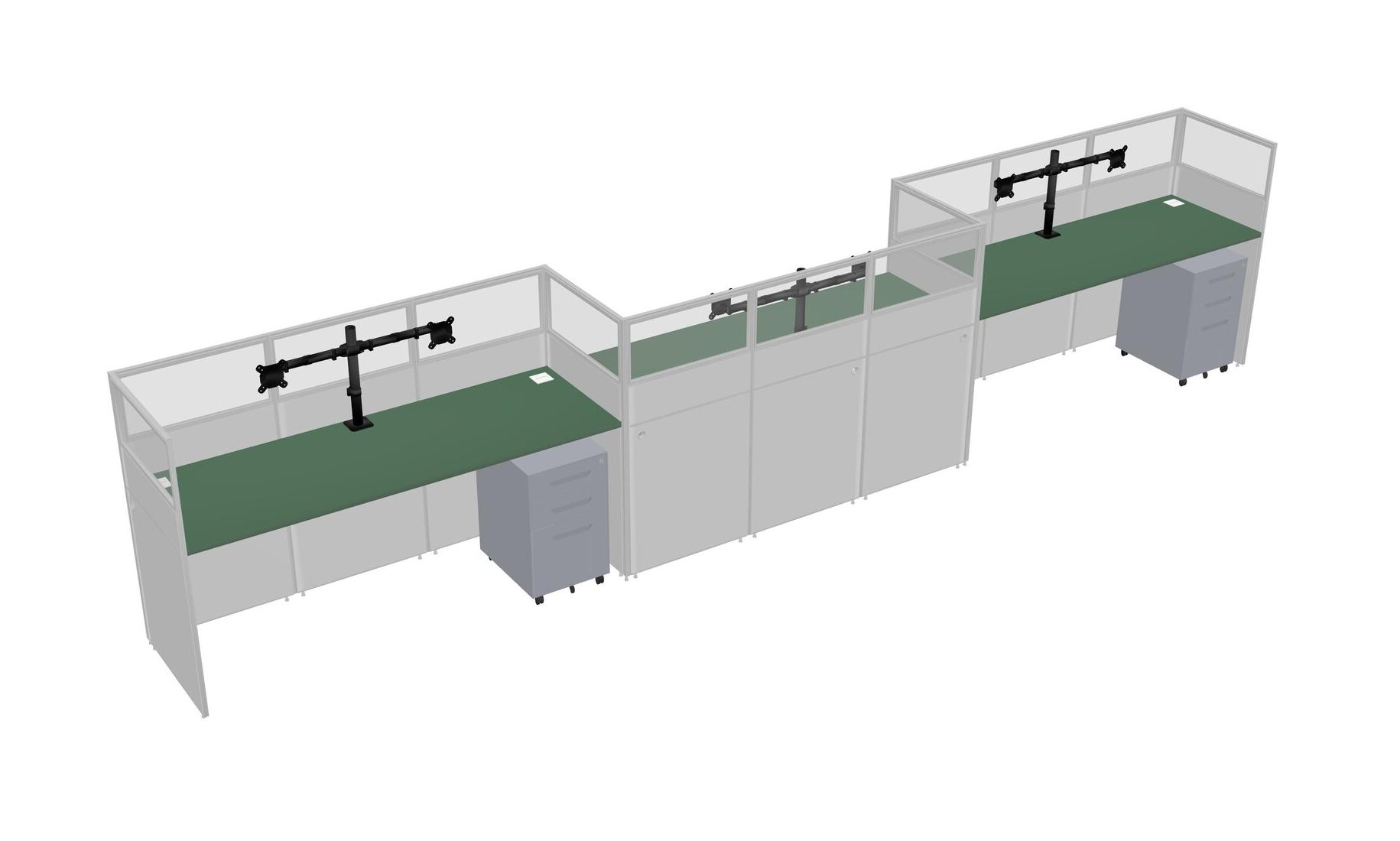 Green Rectangular Cubicle Workstations For 3 - Zigzag Formation + Grey Metal Mobile Drawers