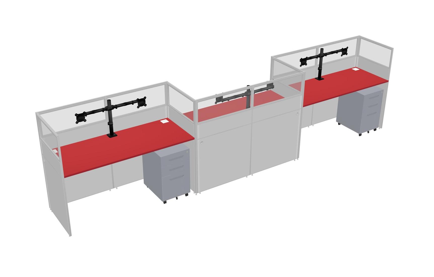 Prism Red Rectangular Cubicle Workstations For 3 - Zigzag Formation + Grey Metal Mobile Drawers