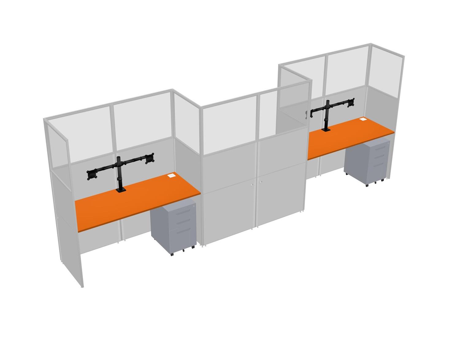 Orange Rectangular Cubicle Workstations For 3 - Zigzag Formation + Grey Metal Mobile Drawers
