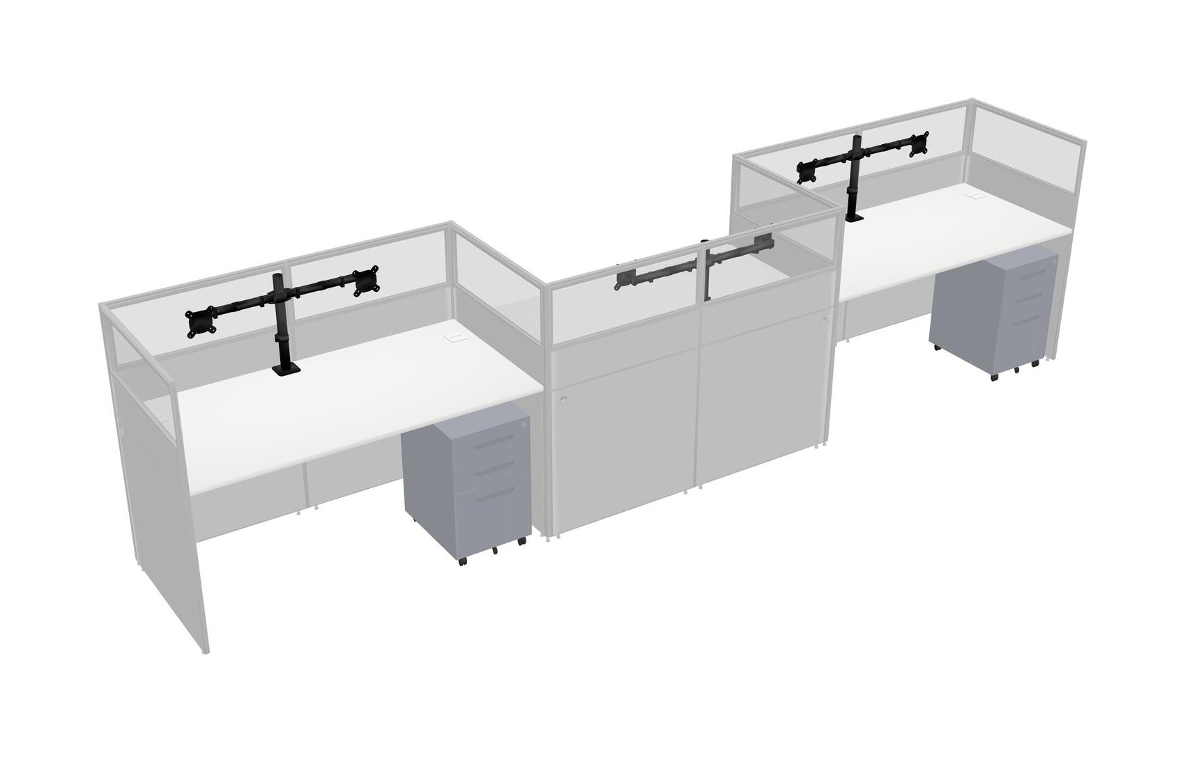 White Rectangular Cubicle Workstations For 3 - Zigzag Formation + Grey Metal Mobile Drawers