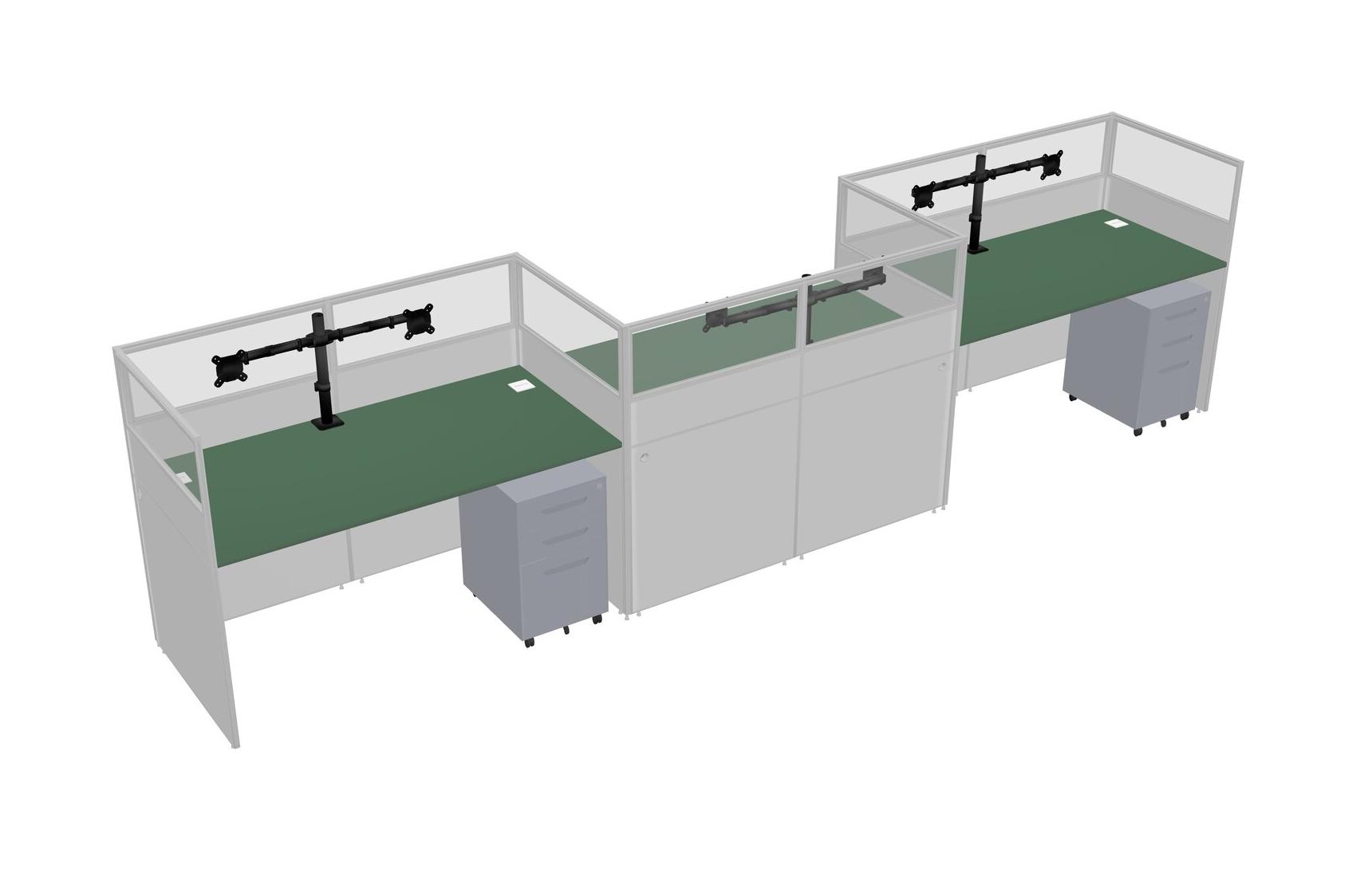 Green Rectangular Cubicle Workstations For 3 - Zigzag Formation + Grey Metal Mobile Drawers