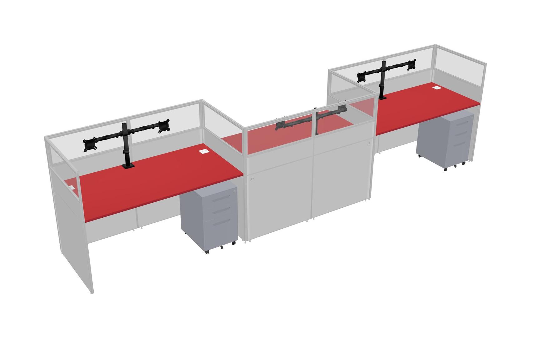 Prism Red Rectangular Cubicle Workstations For 3 - Zigzag Formation + Grey Metal Mobile Drawers