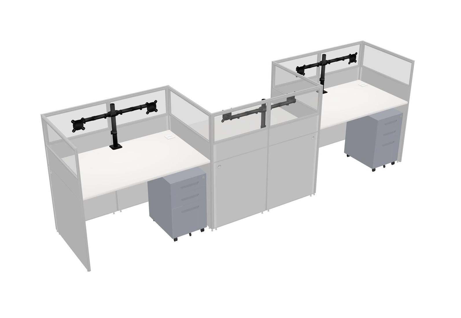 White Rectangular Cubicle Workstations For 3 - Zigzag Formation + Grey Metal Mobile Drawers