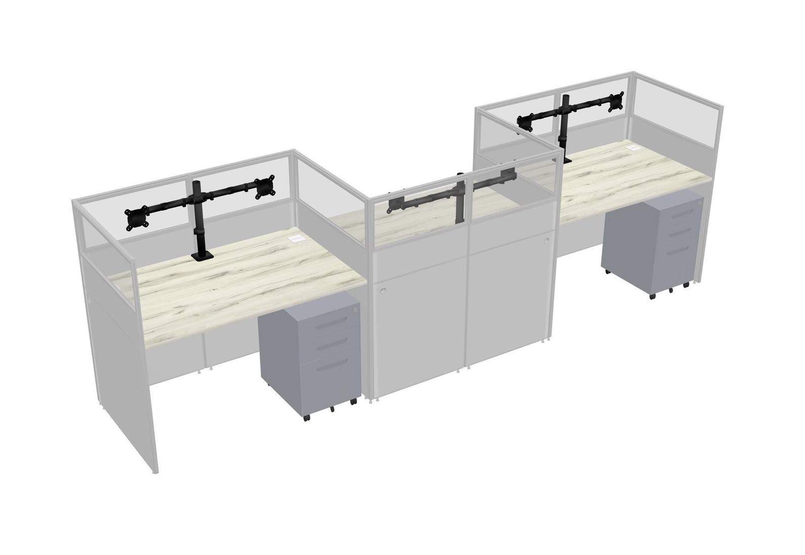 Heinne Holz Rectangular Cubicle Workstations For 3 - Zigzag Formation + Grey Metal Mobile Drawers