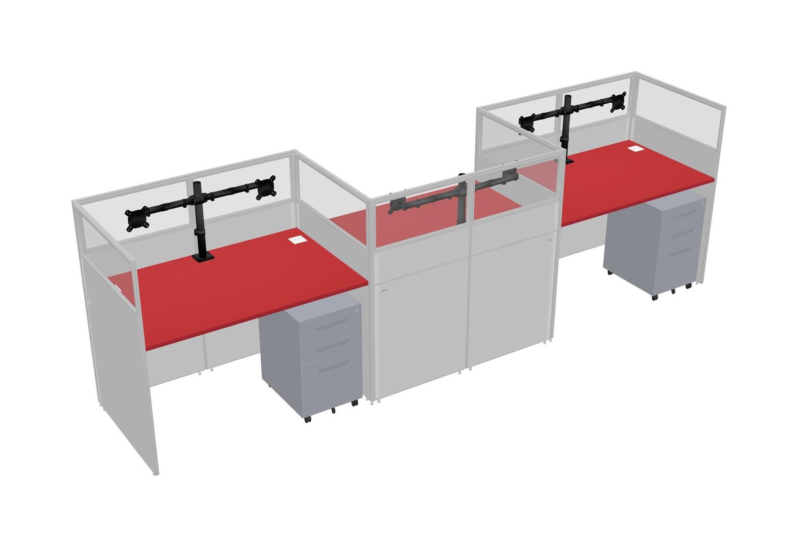Prism Red Rectangular Cubicle Workstations For 3 - Zigzag Formation + Grey Metal Mobile Drawers