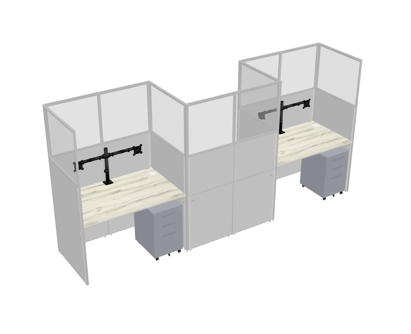 Heinne Holz Rectangular Cubicle Workstations For 3 - Zigzag Formation + Grey Metal Mobile Drawers