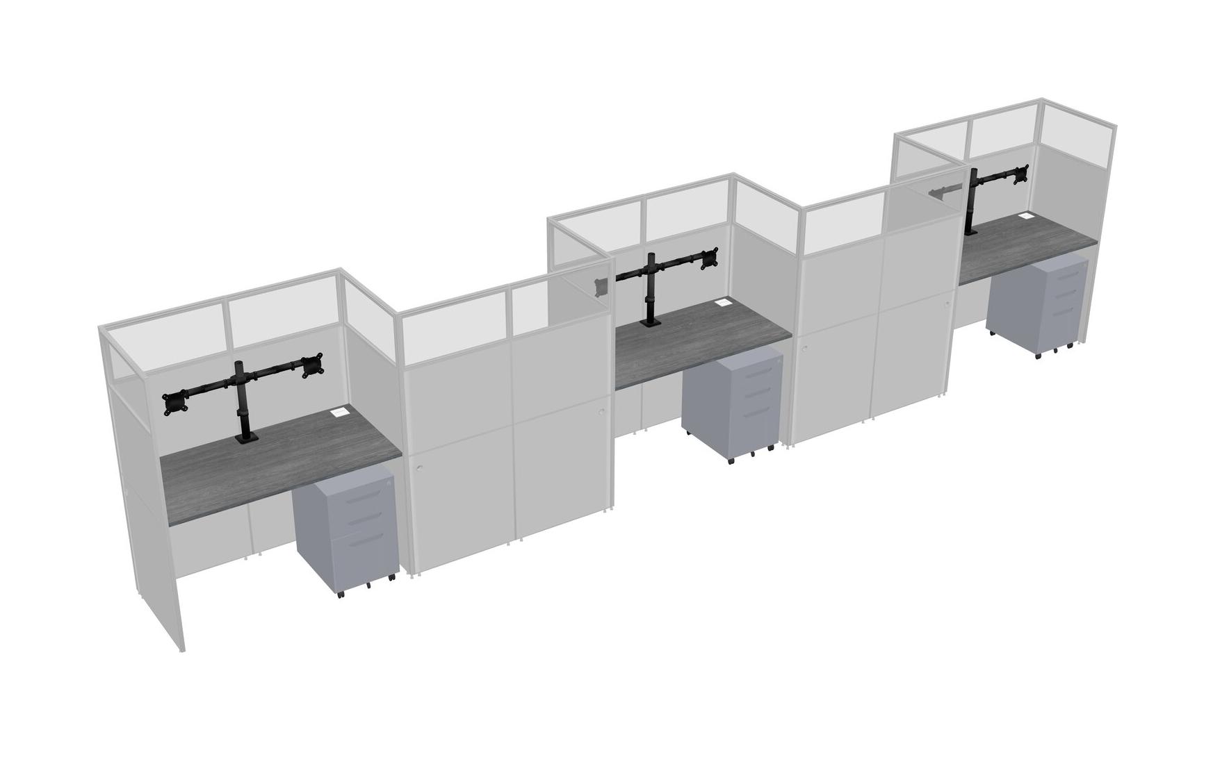 Grey Rectangular Cubicle Workstations For 5 - Zigzag Formation + Grey Metal Mobile Drawers
