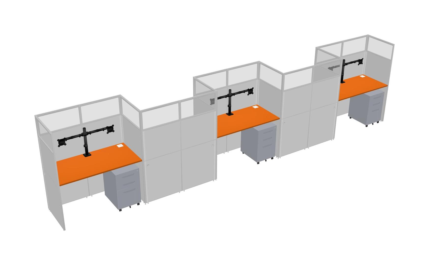 Orange Rectangular Cubicle Workstations For 5 - Zigzag Formation + Grey Metal Mobile Drawers