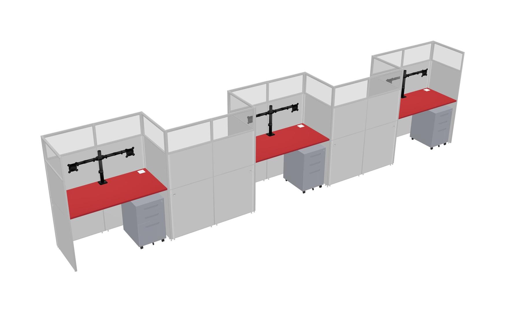 Prism Red Rectangular Cubicle Workstations For 5 - Zigzag Formation + Grey Metal Mobile Drawers