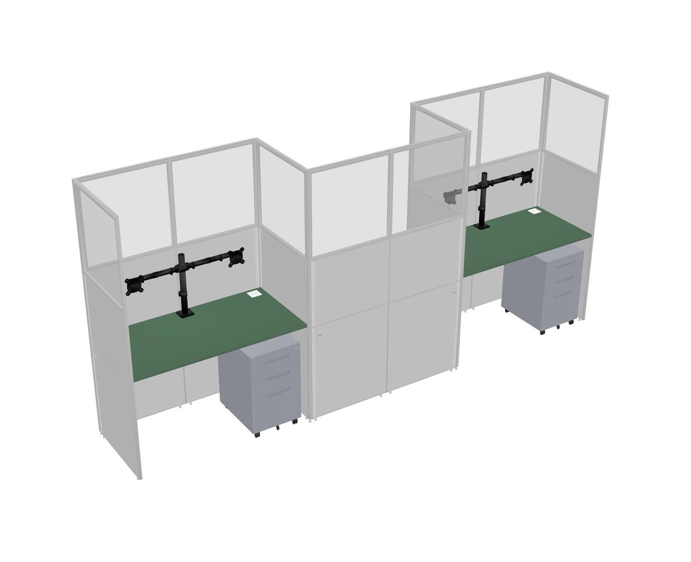 Green Rectangular Cubicle Workstations For 3 - Zigzag Formation + Grey Metal Mobile Drawers